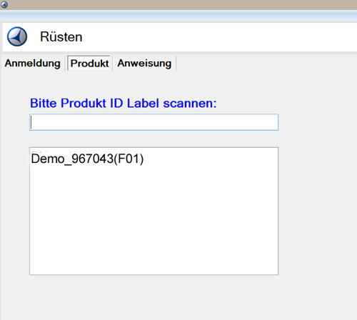 • Eingabe der Produktbezeichnung mit einem Handscanner. Dazu kann ein Golden Device oder ein Laufzettel mit einem Strichcode, 2D Code oder ähnlichem als Quelle herangezogen werden.